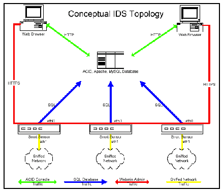 IDS Systems using Snort and ACID (on Mysql database for IDS event logging) Enterprise Security Management Integration provided |